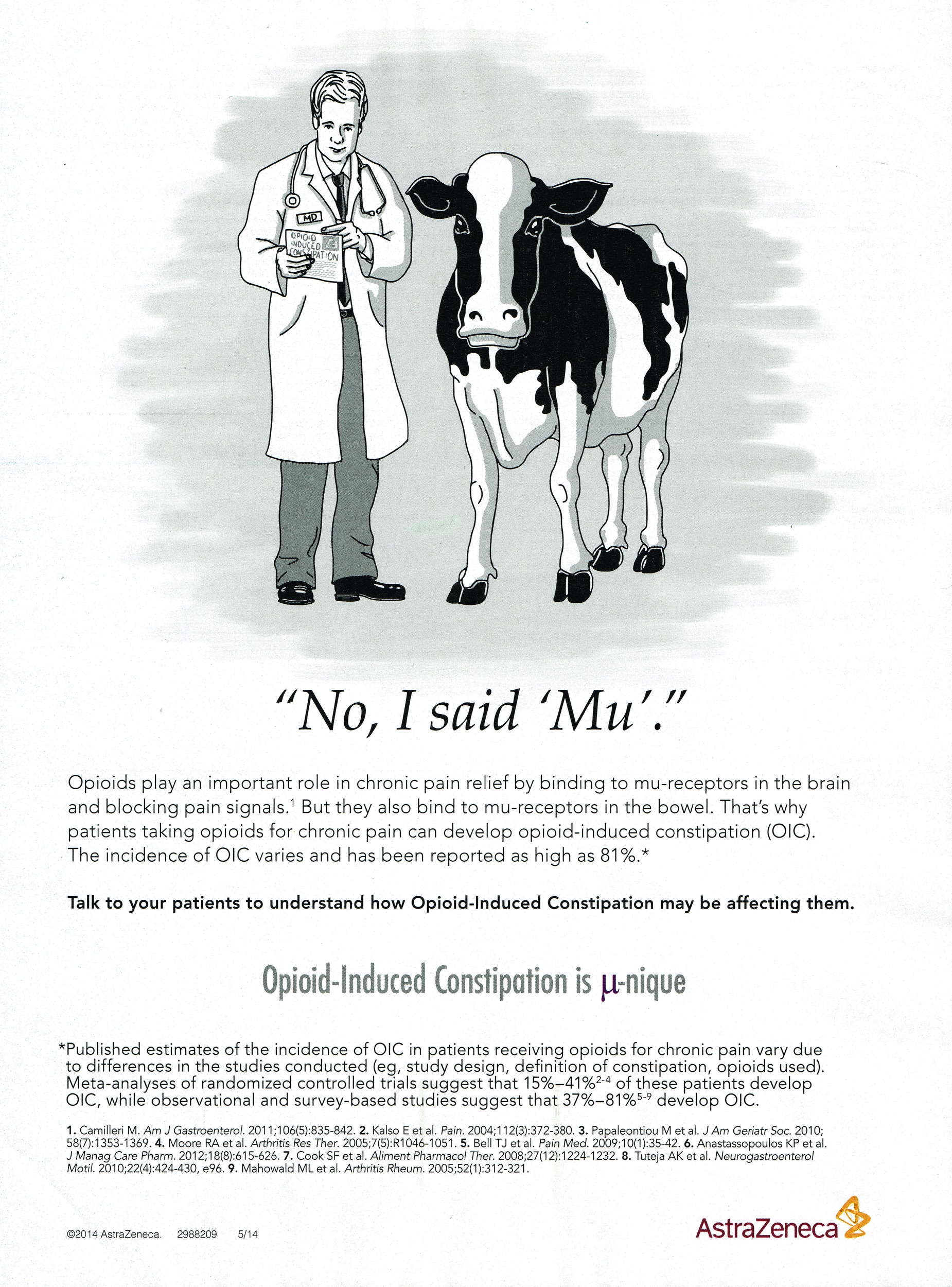 Opioids play an important role in chronic pain relief by binding to mu-receptors in the brain and blocking pain signals. But they also bind to mu-receptors in the bowel. That's why patients taking opioids for chronic pain can develop opioid-induced constipation and why AstraZeneca wanted to help HCPs understand the connection.